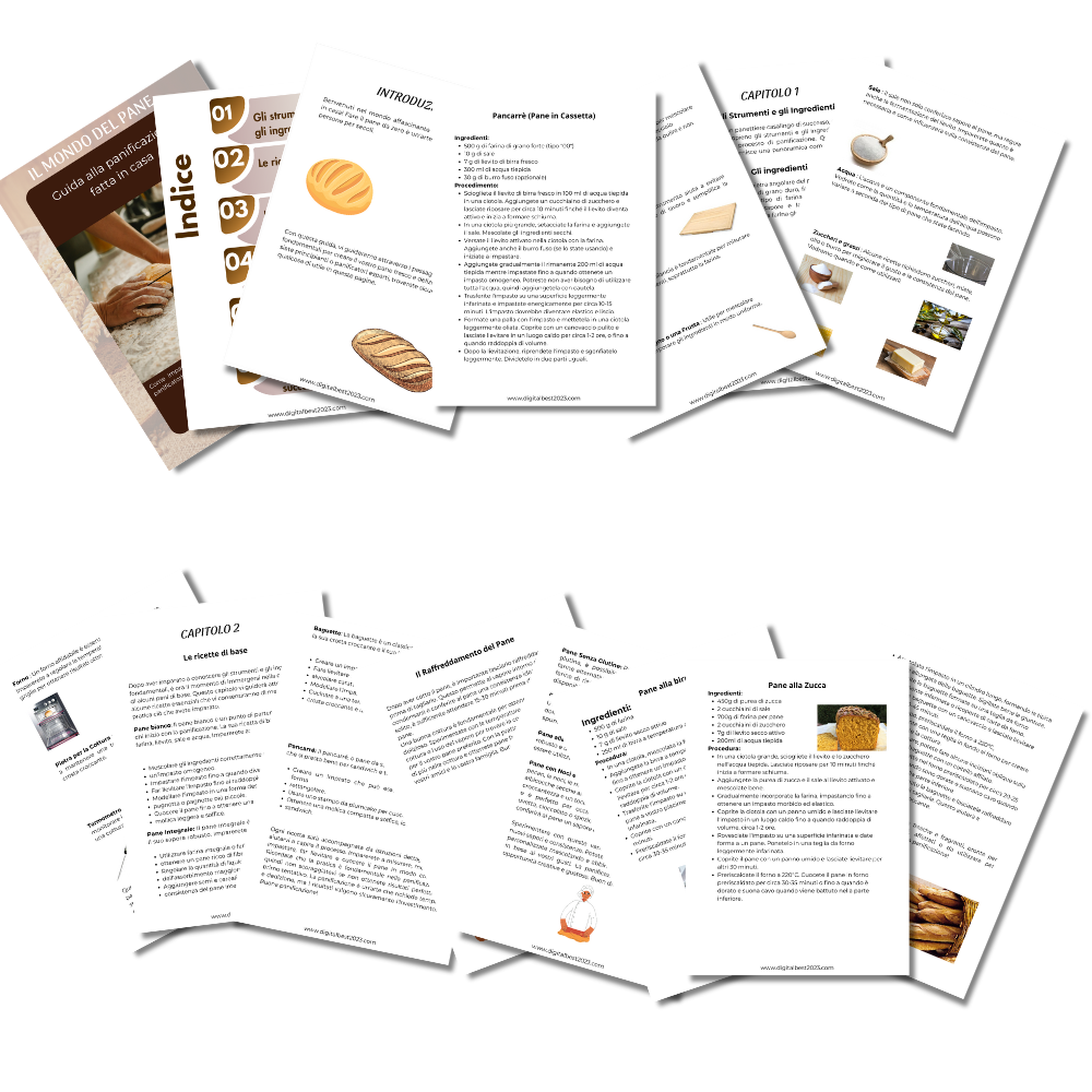 Benvenuti nella vostra guida personale alla panificazione casalinga. Questa guida è progettata per introdurre sia principianti che cuochi esperti nel meraviglioso mondo della panificazione. Con istruzioni chiare,ricette deliziosee suggerimenti pratici,imparerete a preparare una varietà di pani fatti in casa,dalla semplice pagnotta bianca alle baguette croccanti e ai pani integrali ricchi di sapore.